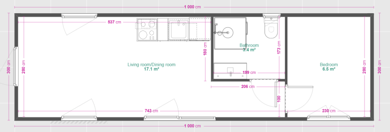 - Außenmaße: 10,00 × 3,00 m