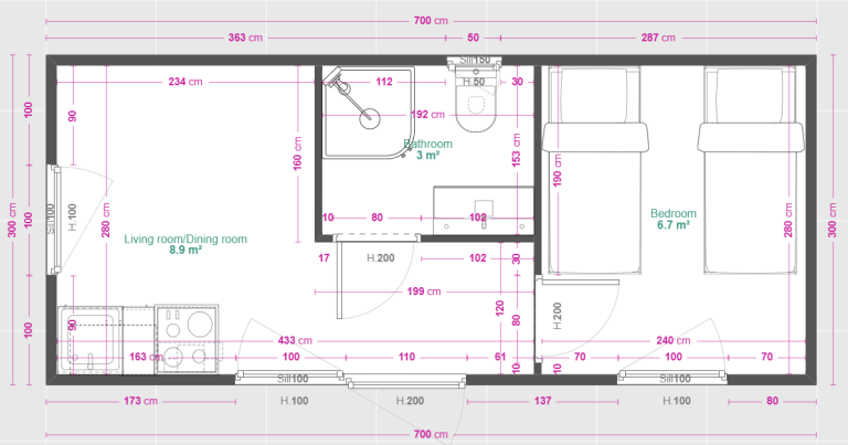 - Außenmaße: 7,00 × 3,00 m
